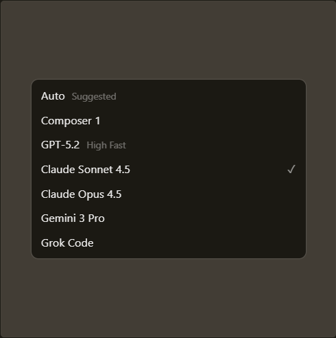 Choose between every cutting-edge model from OpenAI, Anthropic, Gemini, xAI, and Cursor.